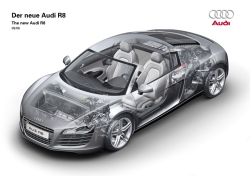 The performance figures are impressive: the R8 accelerates from a standstill to 100 km/h in 4.6 seconds and reaches a top speed of 301 km/h. The Audi R8's dry sump lubrication – another technology originating directly from motor racing – provides the ideal basis for maximum longitudinal and lateral acceleration. It allows the V8 to be installed lower, thereby lowering the centre of gravity and further enhancing driving dynamics. Two transmissions are available: a manual 6-speed gearbox or optionally the Audi R tronic sequential-shift gearbox. Here, too, the influence of the motorsport world is clearly evident, with a joystick gear-shift on the centre console and, most especially, the paddles mounted on the steering wheel, which are a long-established ergonomic feature in motorsport. The best illustration of this is once again the Le Mans winning Audi R8, which also enables the driver to change gear on the steering wheel. The chassis features forged aluminium double wishbones at the front and rear. At the front they are triangulated, while at the rear the top one is triangulated and the bottom one is a triangulated wishbone with a track rod. This provides for optimum wheel control, and is a geometry which has proved itself to be the ideal solution in delivering agility, maximum steering precision and precisely defined self-steering characteristics. The Audi R8 is fitted with 6-arm 18-inch wheels as standard, and can optionally be ordered with 19-inch wheels. The 235/40 size tyres at the front and up to 285/35 at the rear provide the necessary road-holding. This tyre configuration also ensures that this mid-engined sports car is always able to translate the dynamism of its drive train and chassis into optimum grip and maximum lateral dynamics. The Audi R8 is being built on a small-lot production line in a specially constructed new block at the Audi plant in Neckarsulm. The entire production process – from the bodyshell construction to final assembly – is organised in the same way as a craft workshop. Small teams of specialists accompany every step of production, subjecting every part and component to intense scrutiny. This ensures that every one of the maximum of 15 cars per day built will more than match the customary high quality standards of the Audi product range. September 29, 2006