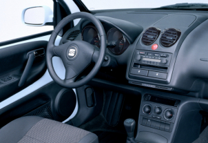 In the two years since, Seat has presented six new models: Toledo, Ibiza, Córdoba, León, Alhambra and Arosa. The new Arosa presents a clean, impressive, and sporty design. It stands out for its exterior line, and, especially, for its front with a style shared with the new range of Seat products. The front is characterized by the double front headlamps, protected by a transparent glass cover. And the new-design bumpers are in body colour on all versions. At the rear end, the new polygeometrical rear lights sit either side of the wide tailgate, which can be opened in the same way as other models of the brand, tilting the Seat logo. Inside, a new, more ergonomic dashboard welcomes us. The instrument panel contains two different instruments, for the speedometer and the rev counter.