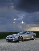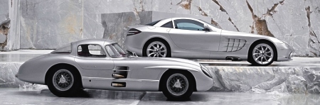 It's the long, sweeping lines of the bonnet, the succinctly styled air gills in the wings, the eye-catching side pipes, the compact tail and, last but by no means least, the gullwing doors which breathe life into the SLR legend. These design features first caused a sensation back in 1952, and have remained the hallmark of thoroughbred Mercedes sports cars ever since. These and other styling elements rooted in the SLR tradition are harmonised smoothly with the latest Mercedes design traits: these include the distinctive "twin-headlamp face", which has been blazing a trail since it first appeared in 1995, and the fascinating interplay of soft contours and taut lines, a characteristic which runs through many of the models in the cur-rent Mercedes portfolio.