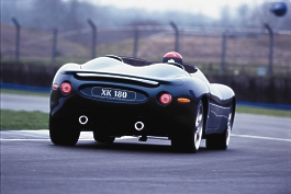 all photos: Ford Created to celebrate the 50th anniversary of the XK series sports cars, the XK180 design draws inspiration from some of the most successful production and competition cars of Jaguar’s history. The performance standards set at the XK’s introduction will be celebrated by the XK180, too. Just as the XK120 proved itself worthy of the numerical designation a half century ago with a 126.448 mph run at Jabbeke, Belgium. While the building of a second XK180 offered SVO an opportunity to incorporate a number of alterations, the performance attributes are unchanged in this version. The engine is a supercharged and intercooled variant of the AJ-V8, modified to achieve an output of 450 horsepower. The five-speed automatic transmission incorporates a Jaguar-engineered selector system which enables gear changes using pushbuttons located on the steering wheel. A Brembo braking system featuring aluminum four-piston calipers and cross-drilled, ventilated rotors provides commensurate stopping power. The 20-inch diameter wheels are fitted with ultra low profile Pirelli Pzero tires. To create the XK180, the SVO group disassembled a production XKR (an XK8 with the 370-horsepower supercharged AJ-V8) and shortened the chassis by five inches. The aluminum exterior body panels were formed at Abbey Panels in Coventry, working to drawings by Keith Helfet, a senior designer in the Jaguar Styling Department.