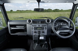 Based on a cast-iron block, the engine features an alloy, 16-valve cylinder head with Denso common rail fuel injection. Not only is combustion noise dramatically reduced, thanks to the excellent control provided by the engine’s solenoid-driven fuel injectors, but a new Garrett variable geometry turbocharger also helps ensure throttle response is improved over the outgoing engine. The engine’s lubrication and sealing systems have been specially developed to cope with Defender’s onerous range of operating angles. The new GFT MT 82 six-speed gearbox provides a much wider ratio spread than before; the lower first gear offers a reduction in crawl speed and combines with the engine’s increased torque output to make towing on-road and off-road even easier. The increased engine torque also helps in-gear acceleration, and has allowed the new sixth gear to be set 20 per cent higher than the outgoing model’s top gear. This helps to improve real-world cruising refinement and fuel economy. Ground gears in both the gearbox and new transfer box help boost refinement, while reductions in clutch and gear-change loads make day-to-day living with Defender significantly easier. Individual pedal maps specifically matched to the demands of each gear are designed to ensure throttle progression and control is better than ever before; in addition, improved anti-stall characteristics further extend the vehicle’s renowned ability to tackle the toughest terrain. Changes to the vehicle exterior have been kept to a minimum, with a revised bonnet profile the only clue to the new Defender’s increased capability. IMPROVED COMFORT AND ERGONOMICS Defender’s new facia is based on a single, large moulding supported on a robust steel rail to help eliminate squeaks and rattles. Instruments from Land Rover’s Discovery 3 provide clear, concise information to the driver, and details like all-LED instrument illumination help ensure high standards of reliability. Improvements to ergonomics abound – for example, a new passenger-side grab handle provides robust, two-handed support during extreme off-road driving. The process of modernising Defender’s facia hasn’t sacrificed its usability either, with versatile stowage shelves conveniently located for both the driver and passenger. Two console options are available: a practical open-tray design that keeps contents to hand and a large, lidded design that provides an impressive 14-litres of stowage. In-car entertainment systems have been upgraded to take advantage of Defender’s improved refinement. For the first time, high-mounted tweeters are available in Defender and work in conjunction with the new speaker installation for significantly improved clarity and sound reproduction. An auxiliary/MP3 audio input socket is also available. Seating is also comprehensively improved. New, taller front seats are designed to improve back support and head restraint ergonomics. Robust, more supportive second row seats are introduced too. 110 Station Wagon and 130 Crew Cab models can comfortably accommodate three occupants on a new, asymmetrically-split second row seat. A spring-assisted fold mechanism helps when folding the seats for carrying large or awkward loads. Defender 90 Station Wagon second row occupants benefit from a pair of individual, full-size, forward-facing rear seats. Providing significantly increased comfort and space over the outgoing model, these seats are also available as a third row option on the 110 Station Wagon. Accessed either through the rear door or by folding the second row seats, they can be easily folded and stowed sideways in the loadspace. Seat trims include durable all-vinyl and cloth specifications; a half-leather option is also available to add a touch of luxury to the new cabin. Three-point safety belts are specified for all seating positions. Upgraded sound insulation, the common rail engine’s excellent combustion control and the significantly higher top gear all contribute to a substantial overall improvement in cabin refinement. In the words of Gary Taylor, Defender’s chief programme engineer, “For many customers, the step change in Defender’s refinement will be one of the most welcome advances; not only are noise levels significantly lower, but sound quality is transformed too.” Defender’s unique vehicle architecture has been retained. The chassis frame is available in three different wheelbases, and in both standard and heavy-duty guise (for even greater load-bearing capabilities). A total of 14 separate body styles – from pick-ups and soft-tops to crew cabs and station wagons – are produced on the mainstream production line. Beyond this, Land Rover’s Special Vehicle Operations team offer a range of products from standard drop-side or box-body conversions to bespoke design and build adaptations into ambulances, mobile hydraulic platforms and even airport fire tenders – all of which are covered by Land Rover’s extensive warranty. (August 26, 06) All pictures: Land Rover