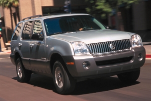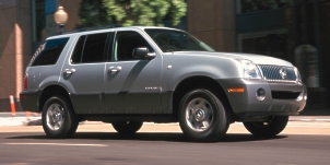 Mountaineer offers one of the most comprehensive safety and security packages available. This includes a new industry-leading Safety Canopy system, which includes side-curtain air bags (available at launch) and rollover protection (available later in 2001). Expressive Design Contemporary architecture was one of the inspirations behind Mountaineer’s unique exterior and interior styling. Unlike any other SUV on the road, Mountaineer features highly geometric, machined surfaces and bold-edged curves. The use of satin-aluminum finishes creates a modern, technical theme. Designers considered great contemporary buildings and other structures as a theme for creating Mountaineer’s new look. The architectural design is intended to reflect the target buyers’ cosmopolitan tastes and preferences. The styling is forward-looking and expressive, keeping with Mercury’s brand identity. The vehicle stance is wide and purposeful. The beltline flows toward the back and is slightly higher in the rear – 15 millimeters – just enough to be noticeable. The technical, geometric theme continues into Mountaineer’s wide lower-body cladding, standard roof rack and optional running boards. Front and rear fascias are integrated to complement each other. Tighter manufacturing tolerances help these units flow visually into the fenders for a more finished appearance than bolt-on bumper units. Satin-aluminum accents are carried through to the inside, particularly around the instrument panel. The instrument cluster features white analog dials highlighted with satin-aluminum pointers edged in red. Functionality also was an important factor when designing the Mountaineer. The innovative rear liftgate is designed to be easy to use. New body-color grip-through door handles add a robust appearance while offering greater ease of use, as well as a quality and more comfortable feel. Unique Driving Character An optional all-wheel-drive system is the foundation for Mountaineer’s distinctive driving character on and off the pavement. Under normal driving conditions, torque is distributed 35 percent to the front and 65 percent to the rear, which minimizes understeer. Whenever the system senses wheel slip or a loss of traction, it transfers torque through a viscous coupling to the tires that have traction. In extreme conditions, virtually all available torque automatically can be sent to the front or rear wheels by the viscous coupling. The system has no switches or levers and needs no driver intervention. Most often, the driver won’t even feel the system working. Mountaineer benefits from an all-new short- and long-arm independent rear suspension (IRS) and independent front suspension design. IRS is very stable against lateral forces – eight times stiffer laterally than comparable solid-axle, leaf-spring designs. At the same time, the system allows for better longitudinal-force compliance, which improves the vehicle’s ride comfort by isolating and reducing the forces that are transmitted to the frame through a traditional leaf spring suspension. Tires can have a dramatic effect on handling and responsiveness, so 16-inch P245/70 all-season road tires are unique to Mountaineer. Available in standard blackwall or optional outline-white-letter trim, the tires respond quicker to steering inputs – enhancing driver feel – without introducing harshness over uneven pavement. The tires are mounted on 16- by 7-inch machined aluminum wheels. The lightweight wheels help reduce Mountaineer’s unsprung weight and enhance suspension response. Mountaineer comes with a choice of two engines, both meeting Low Emissions Vehicle (LEV) standards. The standard engine is an improved 4.0-liter SOHC V-6, which generates 210 horsepower and 250 foot-pounds of peak torque. A more powerful 4.6-liter V-8, with all-aluminum construction and overhead-cam design, is optional. The sophisticated 4.6-liter engine, with coil-on-plug design, offers 240 horsepower and 280 foot-pounds of torque – and will go 100,000 miles before its first scheduled tune-up under normal driving conditions with routine fluid and filter changes. Mountaineer will offer flexible fuel capability with the standard 4.0-liter V-6 engine later in 2001. The Mountaineer Flexible Fuel Vehicle (FFV) can operate on gasoline or a blend of gasoline and ethanol. The use of E85 fuel reduces carbon dioxide emissions by as much as 20 percent, compared with gasoline. Mountaineer offers impressive standard towing capability. The receiver hitch is built into the frame and has a Class II towing capacity of 3,500 pounds. An upgraded towing package, which includes a limited slip rear differential, provides Class III/IV towing capability of up to 7,300 pounds. Package and Ergonomics Mountaineer’s second-row seat is split 40/20/40, which offers ease of access to the third row and the ability to customize the storage area for long or odd-sized cargo. Both the second- and third-row seats fold down to create a flat-floored cargo area. One-handed controls fold the second-row seat completely out of the way for entering or exiting the third row. In addition, small items easily can be loaded through a new rear liftglass, which has been designed to allow a liftover height virtually identical to that of a shopping cart for loading groceries and cargo. The liftglass section also no longer needs a handle to open. It opens with a touch of a dedicated button on the key fob, while leaving the passenger doors locked. Ergonomics and functionality are at the heart of many of the vehicle’s design features. For example, the most frequently used controls, such as radio buttons, are in the driver’s line of sight. Likewise, the optional electronic message center is mounted high, for ease of use. Even the coat hooks have been redesigned to accommodate wider, plastic clothes hangers. Safety, Security and Convenience Mountaineer and the new Explorer are the first Ford Motor Company SUVs with new head-and-chest 
