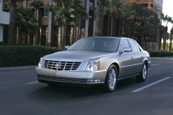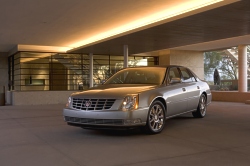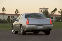 The L37 version is a responsive, higher revving powerplant with more peak horsepower and a higher redline (6700 rpm vs. 6500 rpm). The LD8 puts more emphasis on quick launch and part-throttle response with greater peak torque. Chassis refinements Chassis tuning on the DTS has focused on achieving a smooth, quiet, refined ride. Perhaps the biggest differentiator between the current DeVille offerings and the DTS comes in the form of an entirely new front cradle design. On the DTS, the engine is mounted to the cradle, and the cradle is mounted to the body rails. A host of integrated chassis control technologies include four-channel anti-lock brakes and traction control, four-channel StabiliTrak with Brake Assist, and Magnetic Ride Control. The DTS also employs larger 17- or 18-inch wheels and tires as well as larger 323-mm brakes for enhanced stopping power. Technology Comfort, convenience and safety offerings on the DTS are plentiful and include heated and cooled front seats; heated rear seats; heated steering wheel; standard tri-zone climate control; Adaptive Remote Start with personalization; heated windshield washer fluid; rain-sensing wipers; power folding outside rearview mirrors; front and rear ultrasonic park assist; IntelliBeam automatic high-beam headlamps; in-dash six-CD changer and MP3 player; standard dual-stage (driver) and dual-depth (front passenger) air bags, roof-rail curtain air bags, and front seat side-impact thorax air bags; a passenger occupant detection air bag suppression system; adaptive cruise control (ACC) with audible and visual alerts; OnStar; XM radio; and DVD navigation system. Precise dimensional accuracy Literally hundreds of criteria points have been strictly adhered to throughout the development of the vehicle – the result is outstanding fit, finish and overall harmony of the elements. The DTS is executed to some of the tightest tolerances in the industry. The result is extremely tight surface-to-surface relationships that enable the vehicle to appear as if it were crafted from a single piece of billet steel. Safety refinements