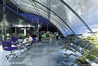 stainless steel for the facades and the curved roof. Splashes of bright